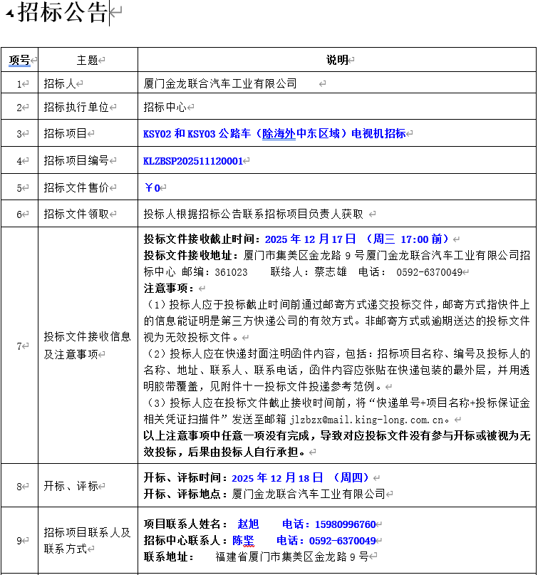 公开招标招标公告-KSY02和KSY03公路车(除海外中东区域)电视机